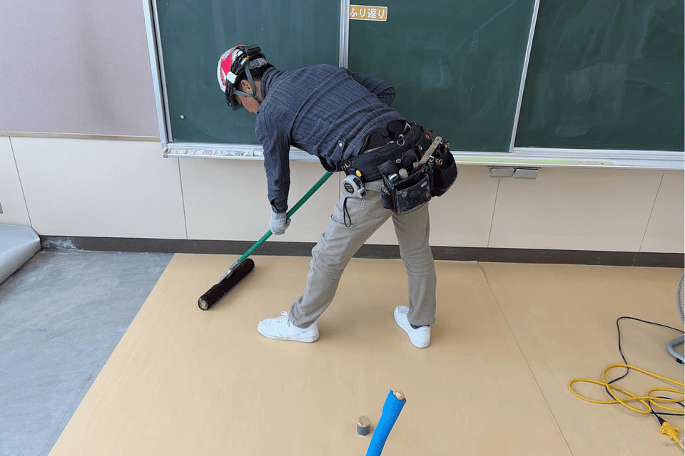 ①2026/2/4 家庭科室 床シート張付け 圧着状況