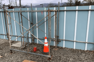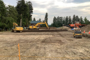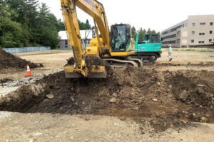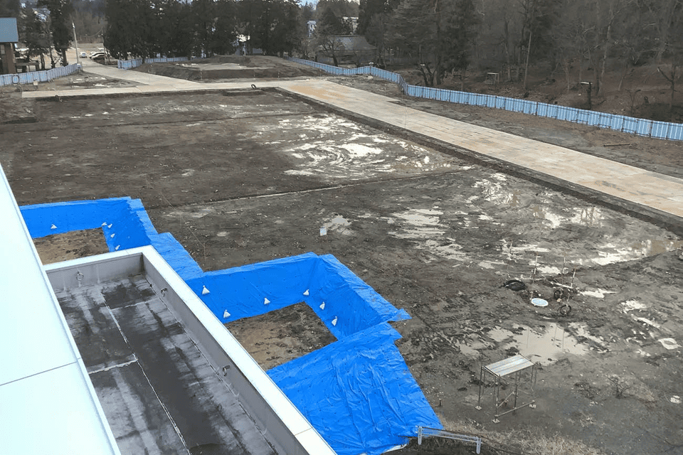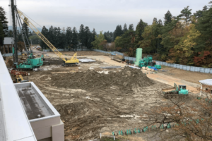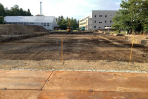 現場事務所設置、搬入路造成、鋤取り・整地、仮囲い