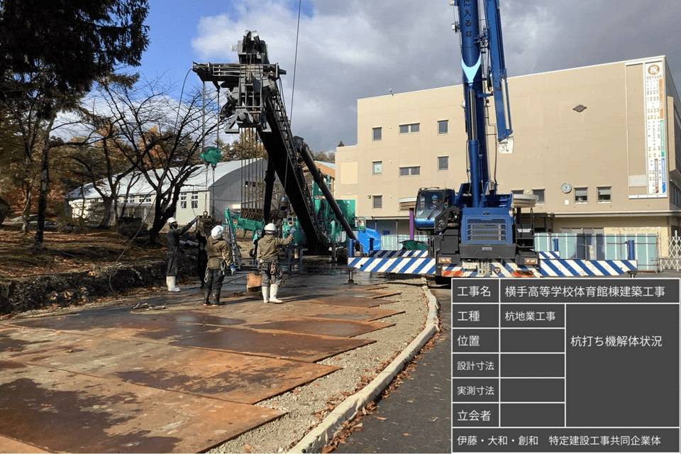 杭地業工事(既製コンクリート杭打設)各機材解体・搬出、建設汚泥中間処理、掘削・盛土、各所掘削・運搬
