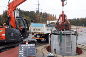 立坑工~沈設マンホール・鋼製ケーシング設置、管きょ工~リブ付硬質塩化ビニル管布設、薬液注入