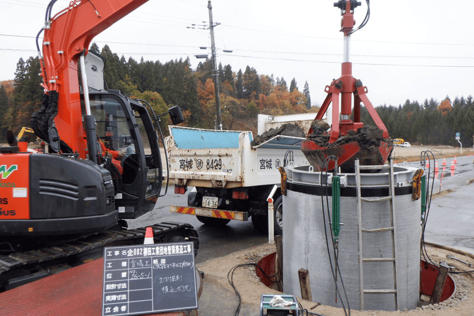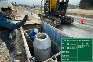立坑工~沈設マンホール設置、管きょ工~リブ付硬質塩化ビニル管布設
