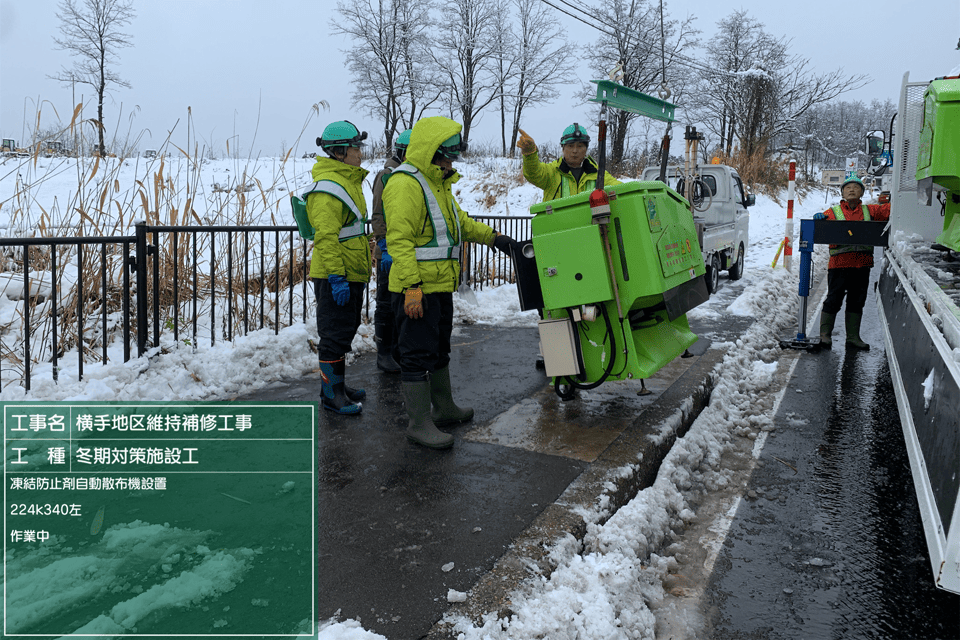 【外ノ目】冬期対策施設工(凍結抑制剤自動散布装置設置)4名 交通誘導 2名