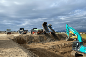 防災拠点盛土工事 盛土搬入敷均し 5名 交通誘導 2名防災拠点整備工事 下層路盤敷均し 3名 交通誘導 1名