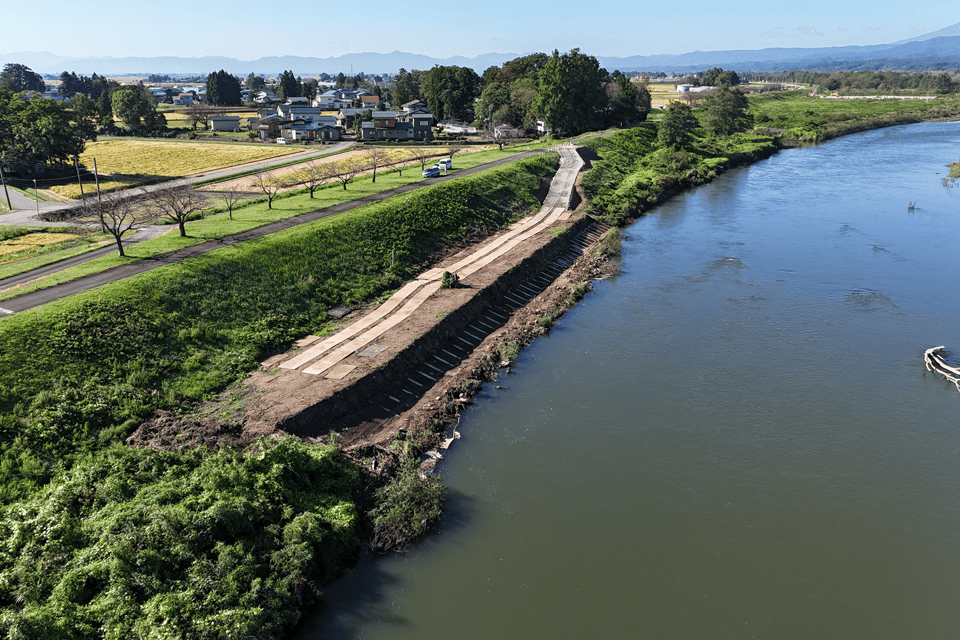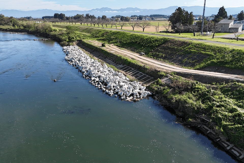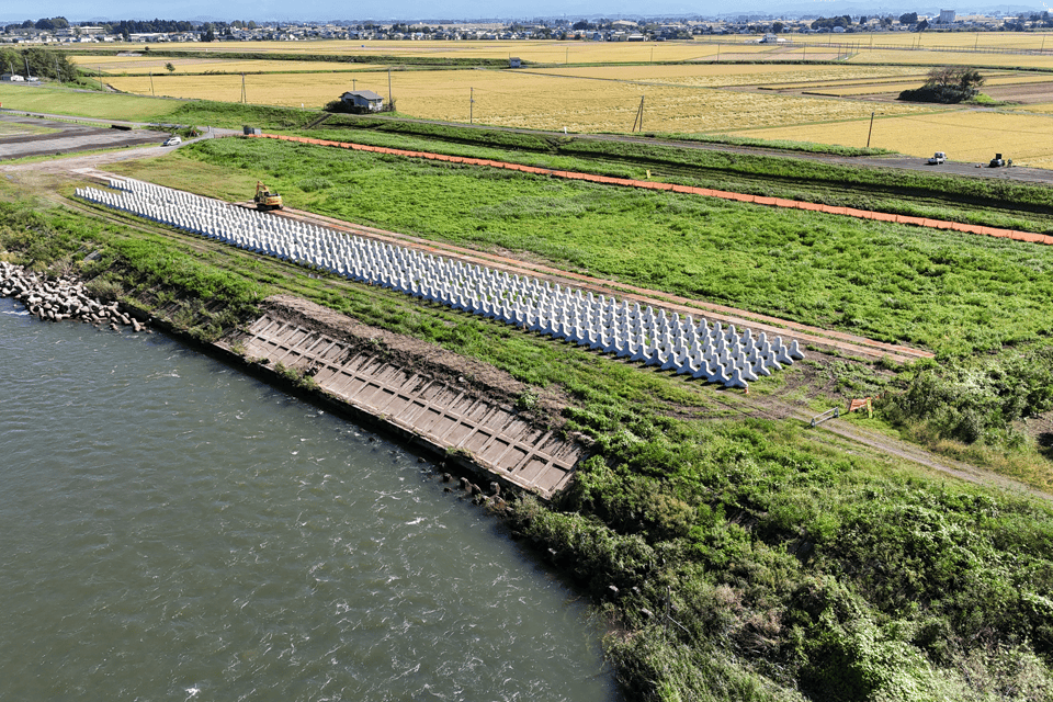 雄物川地区 根固めブロック据付、大雄地区:根固めブロック据付完了