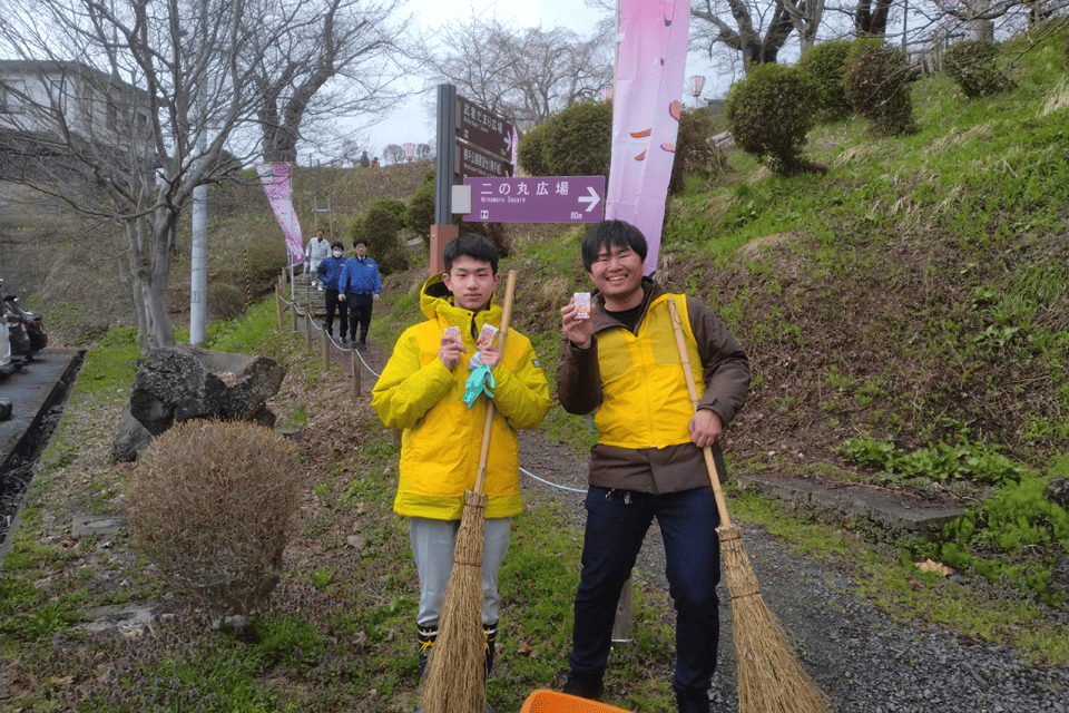 令和8年4月11日(土)午前9時から、一般社団法人横手市観光協会が主催する、横手公園のクリーンアップ「よこてOh!愛で隊 掃き清め大作戦!」に令和8年度の新入社員1名と土木部小川さん、総務経理部奥山部長の3名が参加しました。